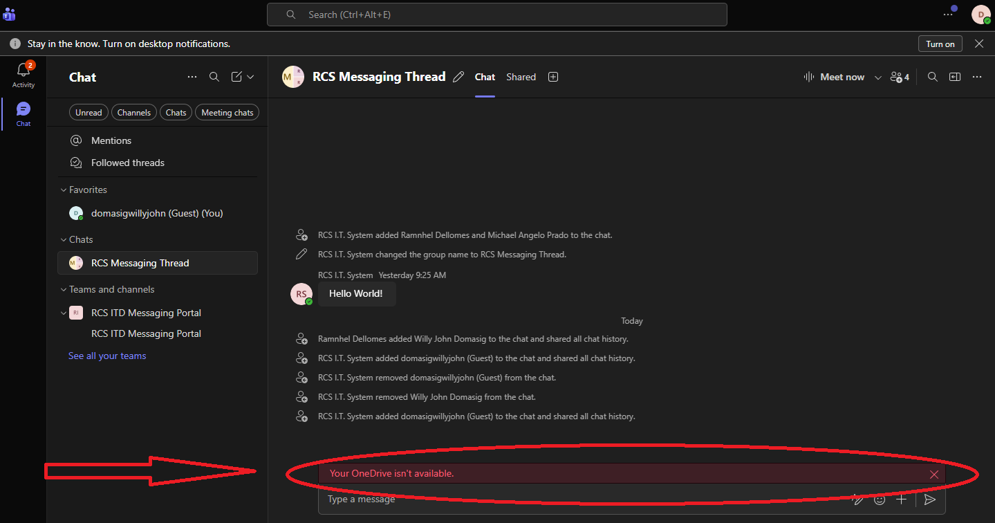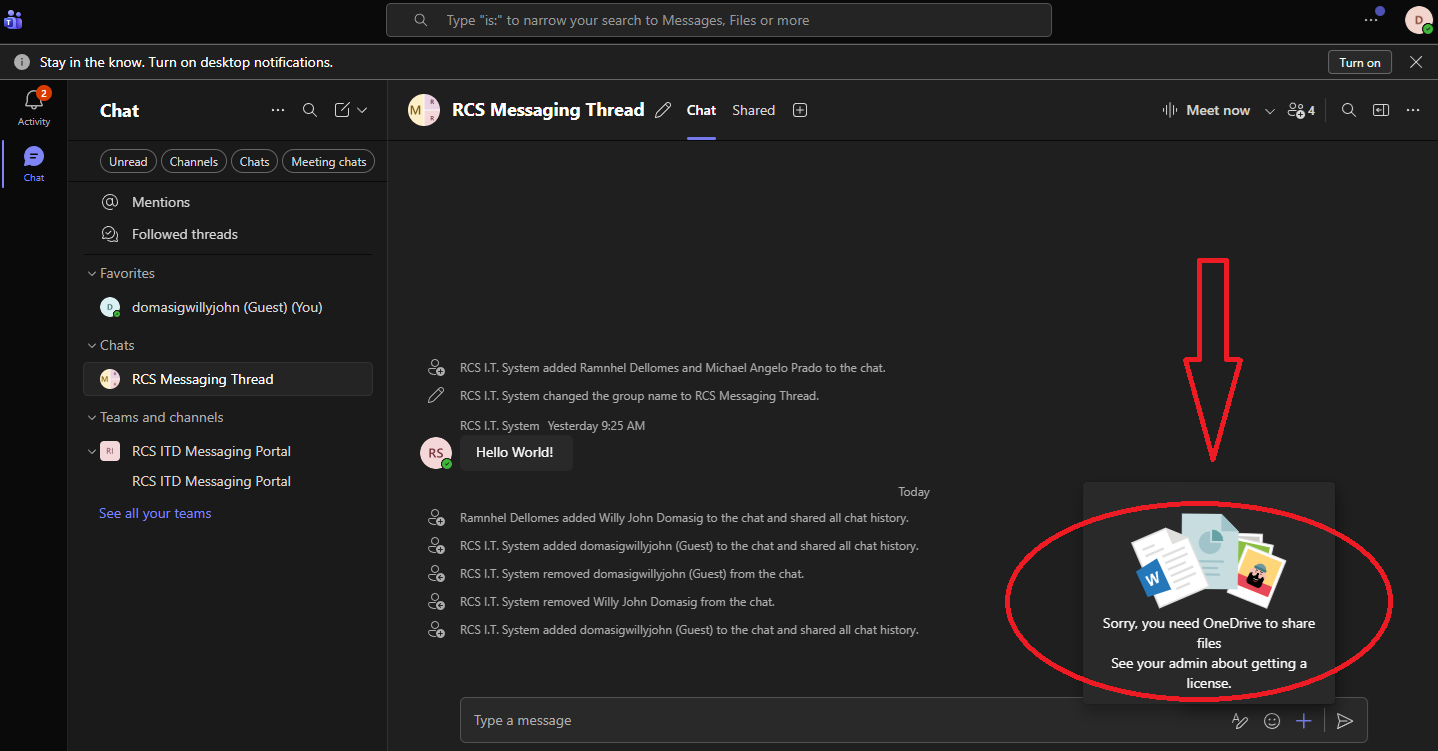 IMPORTANT NOTE: Without subscription plan on MS Teams, you might be encounter errors on below screen shot. Take note that only “Image” will pass through chat conversation. Any attachment e.g. (Word, Excel, PDF, etc.) are forbidden.