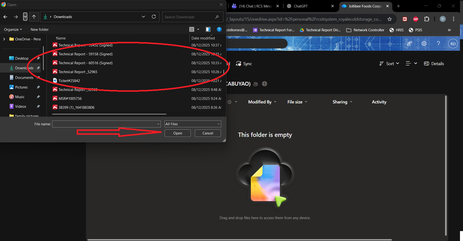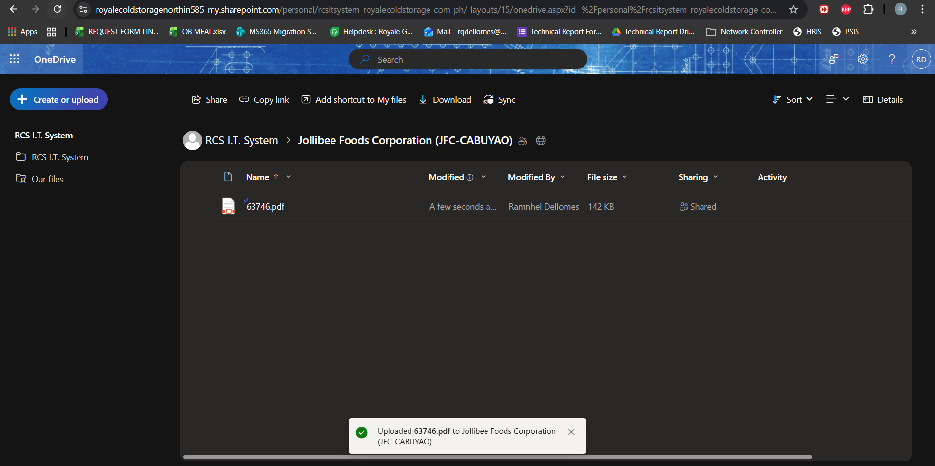 ADD/SHARING ATTACHMENT USING RCS ONE DRIVE LINK