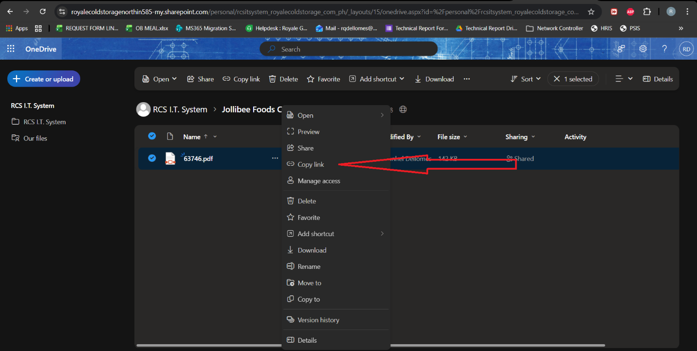 IMPORTANT NOTE: If the “Copy Link” button didn’t appear on your screen, contact IT Department.
